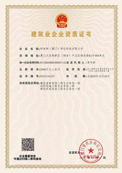 科銳特2009年開始扎根于凈化行業(yè),2013年成立科銳特(廈門)凈化科技有限公司,多年來專注做好一件事-智慧美學(xué)潔凈室集成方案提供商,現(xiàn)擁有凈化系統(tǒng)工程設(shè)計(jì)安裝貳級資質(zhì),裝修裝飾工程專業(yè)承包貳級資質(zhì),建筑機(jī)電安裝工程專業(yè)承包壹級資質(zhì),消防設(shè)施工程專業(yè)承包貳級資質(zhì),工程設(shè)計(jì)專項(xiàng)乙級資質(zhì),智慧云潔凈室系統(tǒng)發(fā)明專利,已通過ISO9001、14001、45001及GB-T50430潔凈室體系認(rèn)證,是業(yè)內(nèi)頗具性價(jià)比智慧美學(xué)潔凈室集成方案提供商。